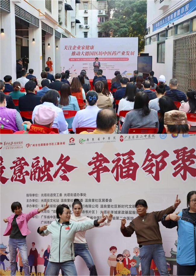 2025年11月28日,冬意初臨,位於解放中路象牙街的大德國醫坊·廣杏裡,卻格外溫暖熙攘。這邊街,“越秀廣杏聚仁心”中醫夜市在熱鬧啟動,那邊巷,溫良裏社區“暖意融冬 幸福鄰聚”的歡聲笑語已然響起。兩場活動,一曲同工,在 “國醫坊·廣杏裡” 這個充滿藥香與溫情的開放式街區內,演繹著傳統中醫智慧如何悄然融入現代街坊的日常。