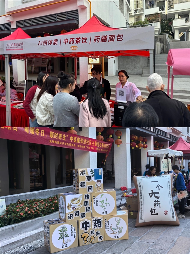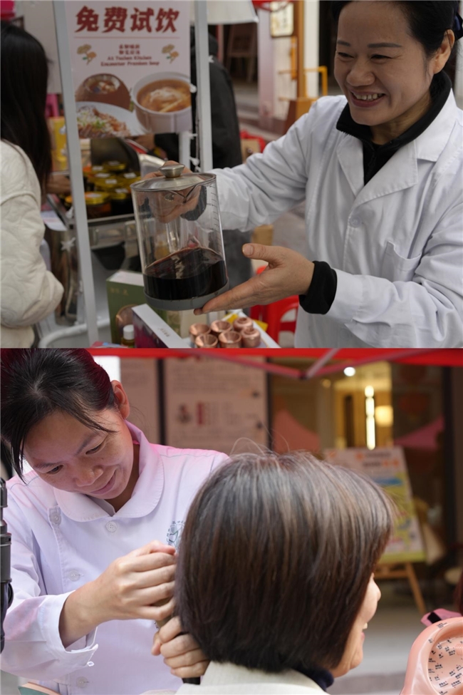 而當夜幕的柔光漫灑,現場的溫情再度升騰。這場中醫夜市活動為這片承載著國醫精粹的街巷,注入了更濃郁的鄰里情懷。廣東省中醫院專家的“秋冬康養課堂”座無虛席,街坊們圍坐一起,在手作香囊和體驗董氏奇穴針灸的過程中,感受著中醫“治未病”的細膩與神奇。這一刻,中醫不再是典籍裏晦澀的理論,而是朋友的一杯溫暖的茶飲,是鄰里間一次溫馨的聊天,是融入日常煙火氣的溫暖守護。