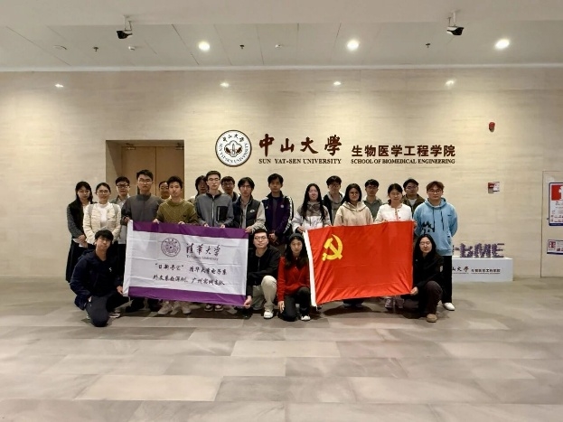 支队成员在哈工大(深圳)信息学部共建交流,两校同学合影留念 1月28日上午,支队前往中山大学深圳校区,与生物医学工程学院开展了深度联合共建。双方围绕“医工融合”的核心定位,分享了学科建设、团队管理与科研动态的经验,并就“三校区五校园”布局、AI应用伦理等议题深入交流。此次联合共建不仅让两校学子加深了对彼此的了解与信任,更在电子科技与医工融合的交叉领域搭建了沟通桥梁。