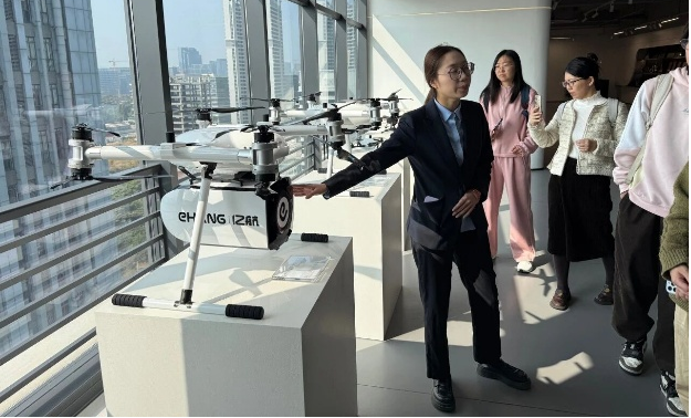 支队成员参访华为坂田基地,与企业人员开展技术交流并合影留念 1月29日上午,支队走进亿航智能公司。亿航智能是全球领先的智能自动驾驶飞行器企业,支队成员们在这里见证了eVTOL技术开启城市空中出行的全新时代,从EH216-S机型的分布式电力推进系统,到低空经济在智慧城市治理中的多重应用,支队成员深刻领悟到新质生产力在航空领域的具象形态。这次行程不仅拓宽了支队成员的知识边界,更让大家看清了中国科技企业在“无人区”中艰难探索并最终走向世界舞台的坚实足迹。